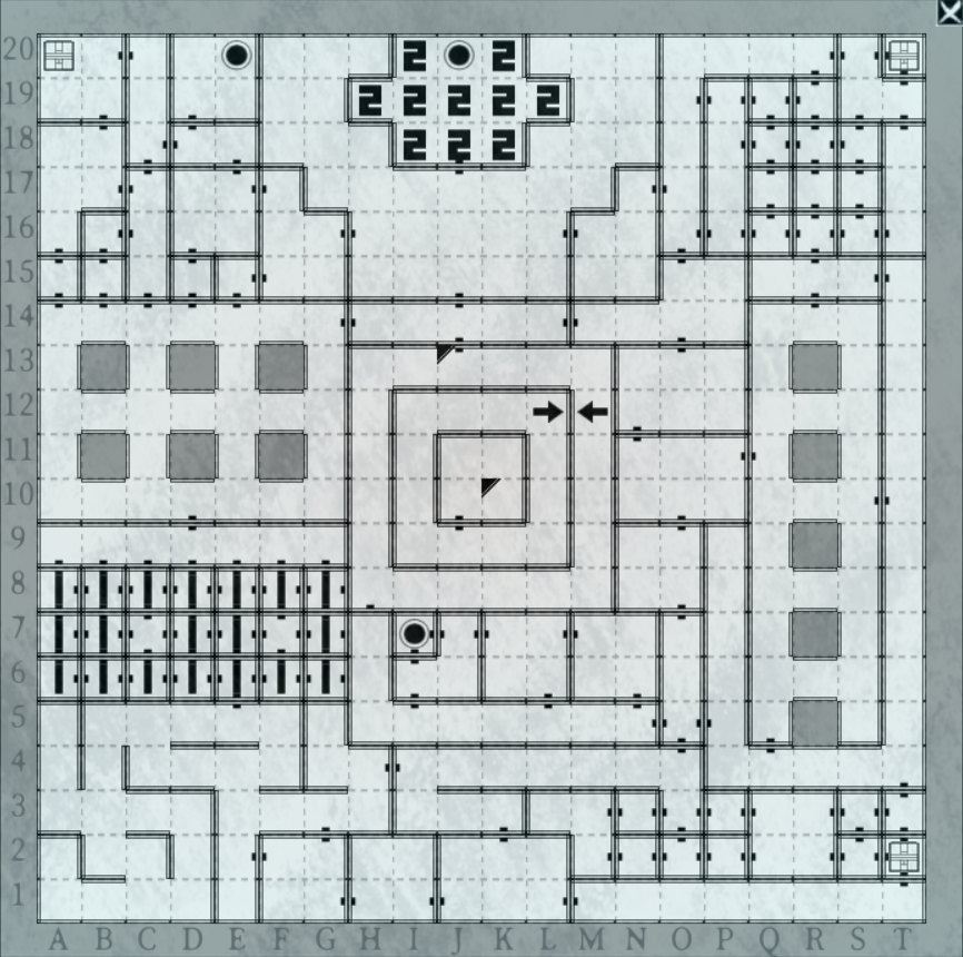 南西の迷路状の部屋周辺でアラクネ、その少し北の回転床の小部屋の集まっているエリアでアーク・スキュラ、