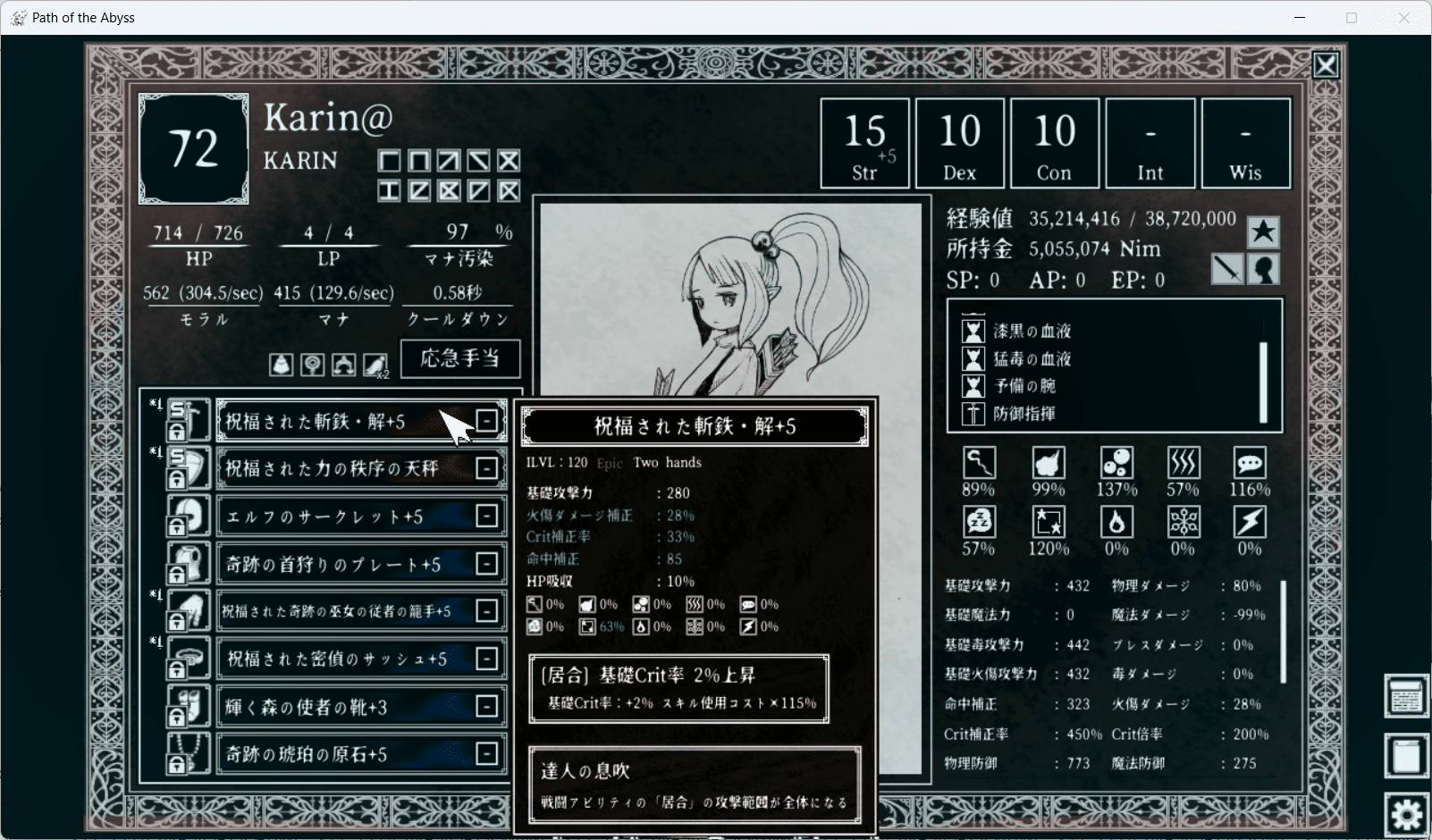 装備で積むのは無意味なのでモラルやマナはモラル吸収とマナ吸収で回復する方向にシフトしましょう。