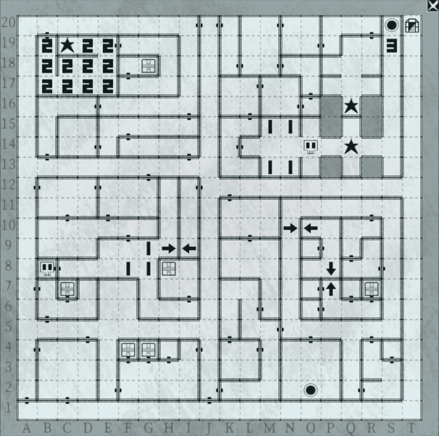 矢印で挟まれた壁は隠し扉(交互通行可能)になっている。